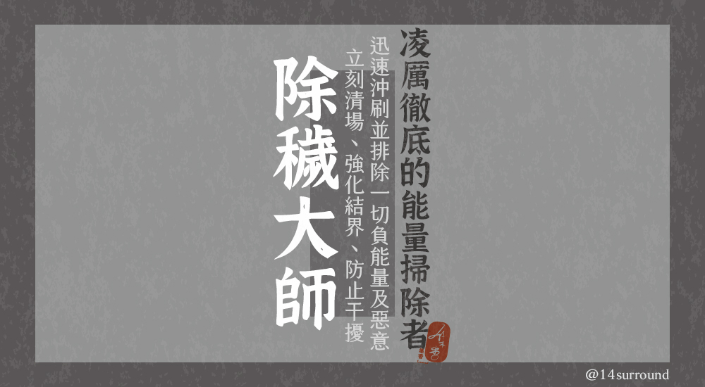 除穢大師猶如氣場世界的鎮魔戰將,迅速而凌厲地沖刷、震攝並排除一切負面能量與惡意。